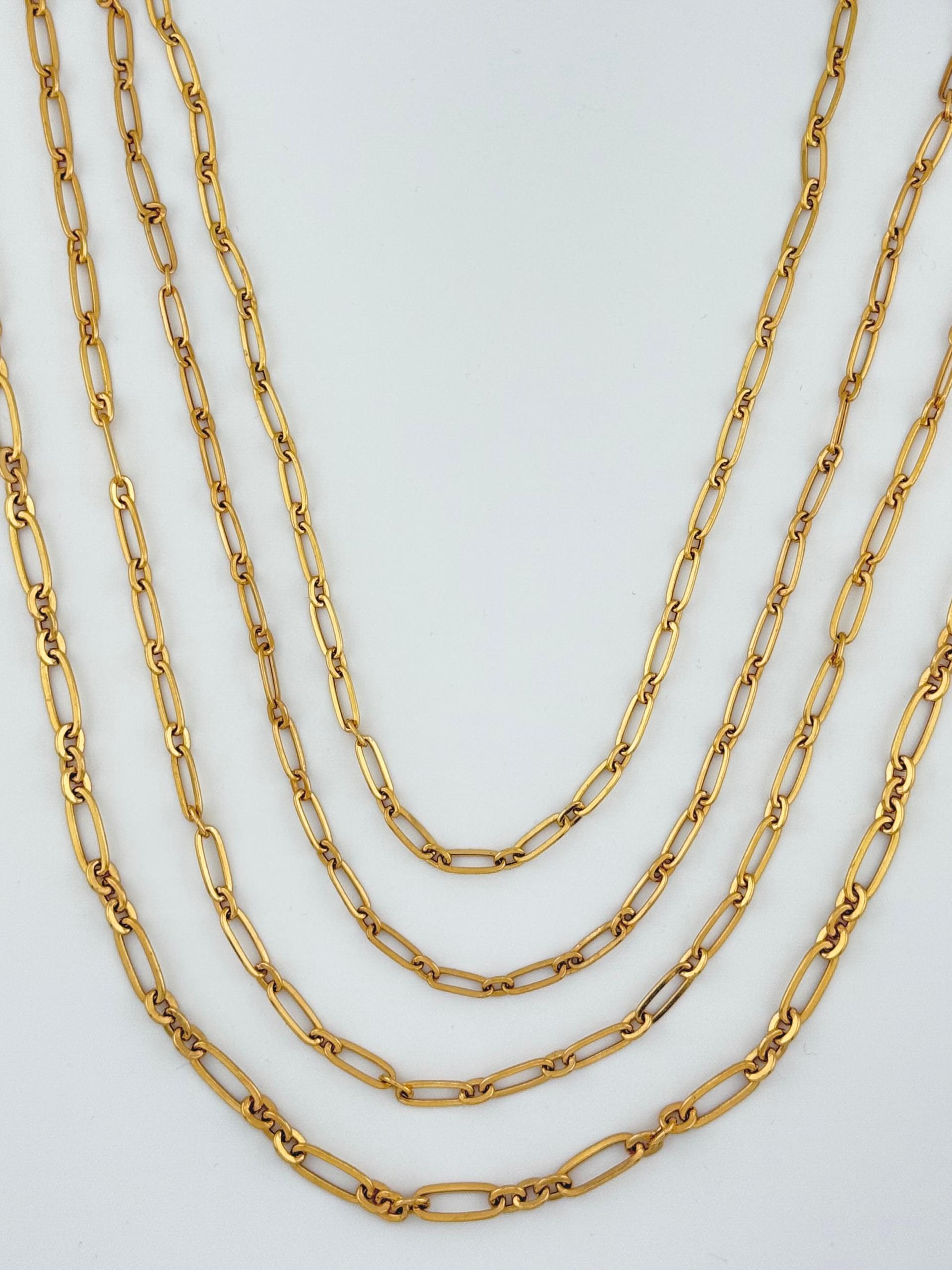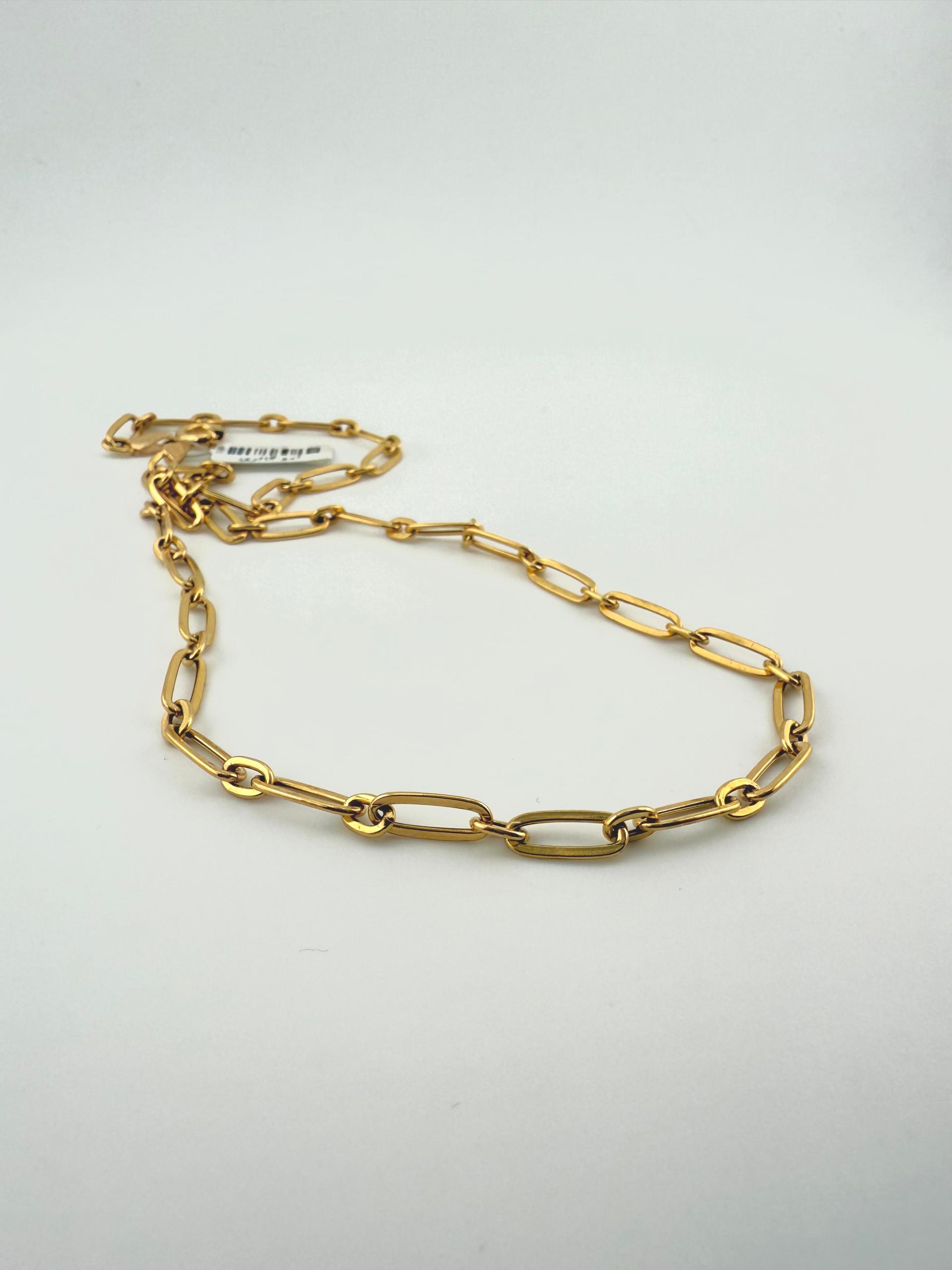 زنجیر طلای قلم دون هرمس با طراحی ظریف و حلقههای کشیدهی کلاسیک؛ مناسب برای استفادهی روزانه یا استایلهای رسمی. این مدل با درخششی یکنواخت و کیفیت ساخت بالا، جلوهای شیک و ماندگار به استایل شما میبخشد.